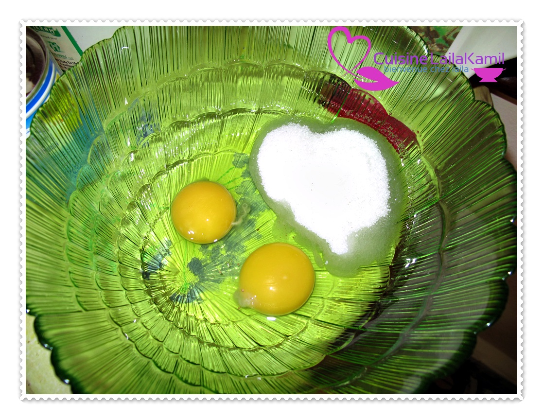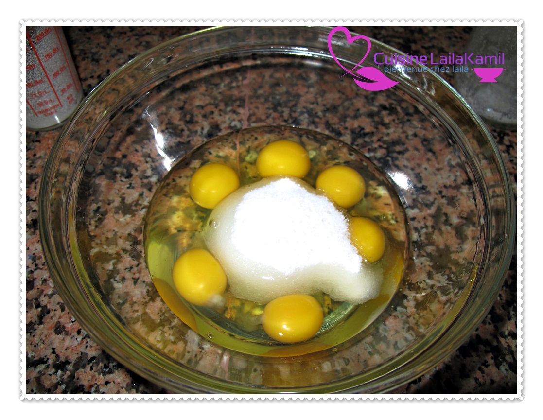 نضرب البيض والسكر جيداا حتى يضاعف الحجم