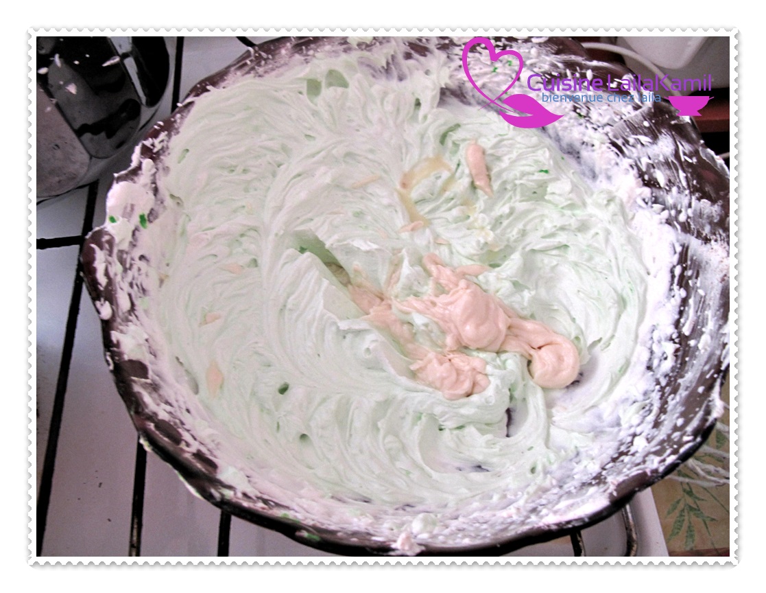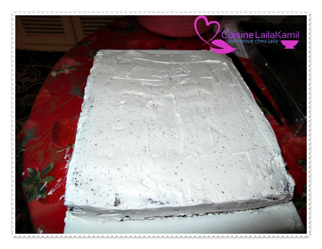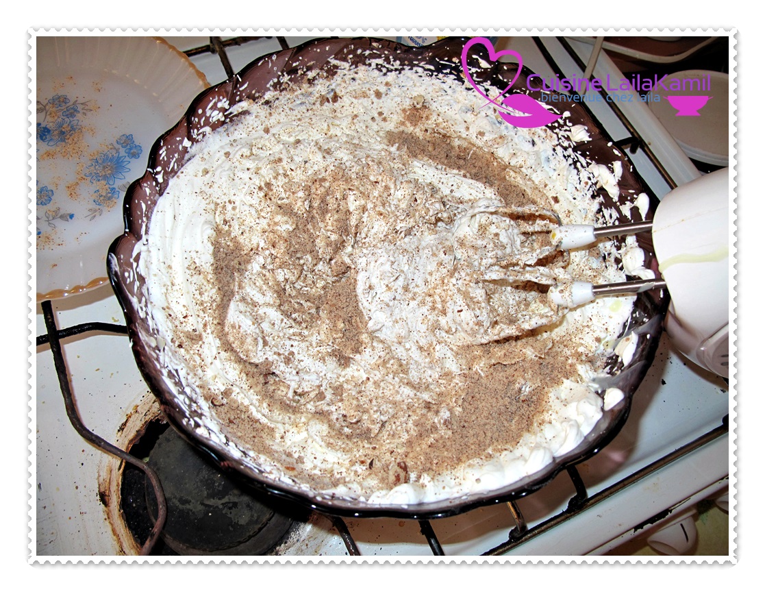 ونركب الطبقات بين كل طبقة وطبقة نضع الكريم ونغيطي اخيرا بالكريم ونزين حسب الرغبة