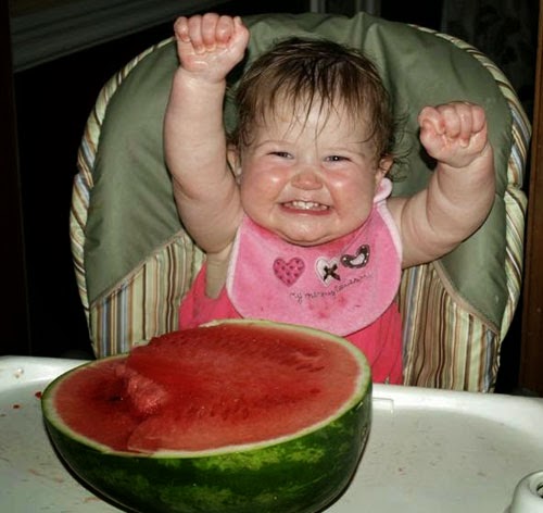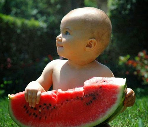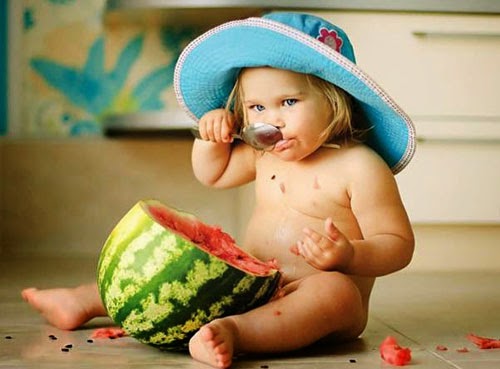 إليكم بعض الأطفال اللذين يقضون لحظات ممتعة مع البطيخ. ولكن كونوا حذرين فبعض الأطفال جلودهم حساسة للبطيخ.