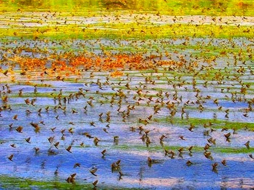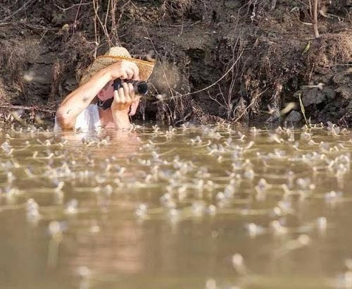 في مشهد لا يصدق غزو ملايين الذبابات العملاقة في نهر تيسا!