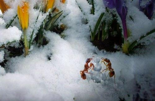 وتضمنت السلسلة الغريبة، صورة للنمل وهو يصنع رجل الثلج الشهير، وأخرى لنملتين تقفان على أحد الجسور، وأخرى لمجموعة من النمل يتجادل أفرادها مع بعضهم البعض في غرفة مجلس الإدارة.