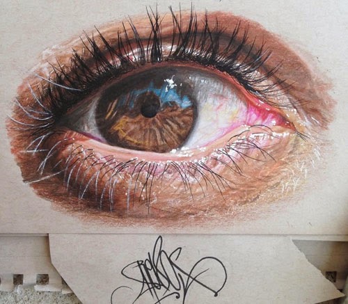مدهش: عيون حقيقية بأقلام ملونة, شاهدوا الصور