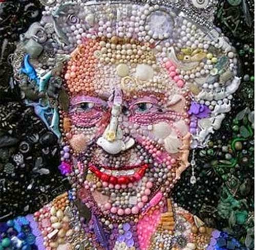 إستخدمت الفنانة البريطانية جين بيركنز Jane Perkins فقط أزرار وألعاب صغيرة وصدف ولم تستعمل أبدا أي ألوان في صنع لوحات فنية مميزة لشخصيات مشهورة.