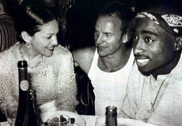 - الممثلة مادونا والمغنيان ستينك وتوباك يتسكعون باحدى المقاهي .