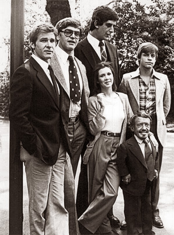 - صورة للممثلين الرئيسيين للفلم المشهور حرب النجوم قبل البدء بالتصوير .