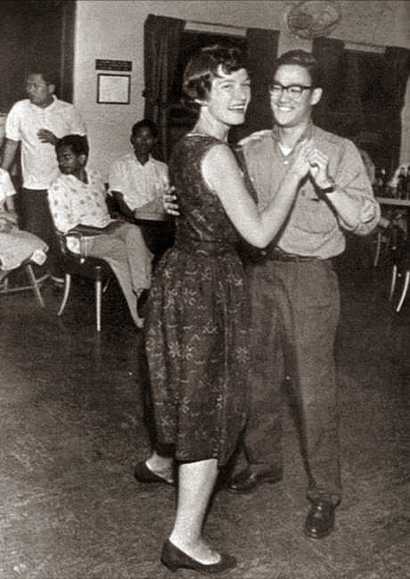 - بروسلي وهو يرقص باحدى الحفلات الامريكية .