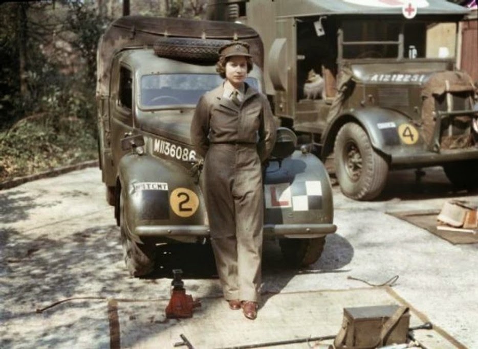 - الملكة اليزابيث اثناء خدمتها العسكرية بالحرب العالمية الثانية .
