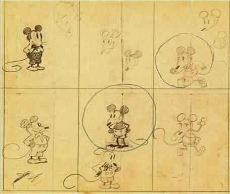 - الرسومات الاولى لشخصية مكي ماوس بيد مبتكرها والت ديزني .