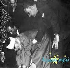 - صورة للرئيس الراحل جمال عبد الناصر وانور السادات وهم يساعدوا الشيخ بالنهوض والصلاة بهم .