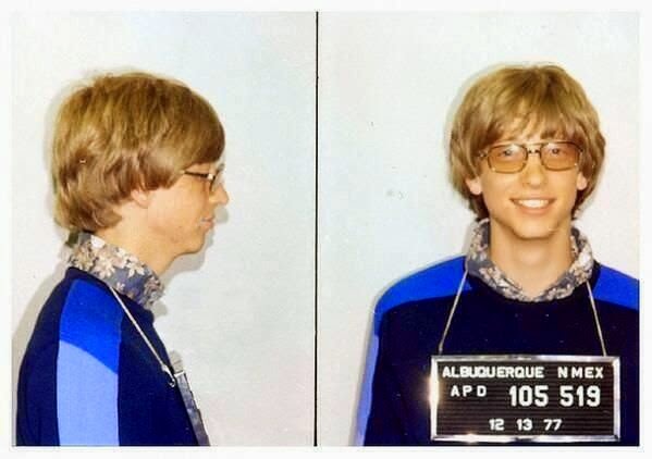 - صورة من قسم الشرطة لبيل جيتس بعد احتجازه لقيادته سيارة دون رخصة قيادة عام 1977 .