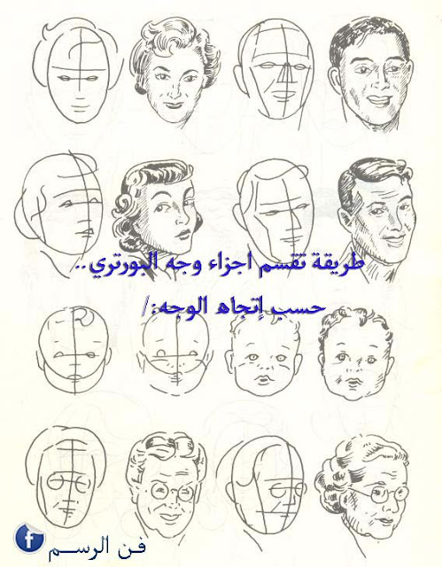 وهذه صورة توضحية لطريقة التقسيم أجزاء البورتريه ..