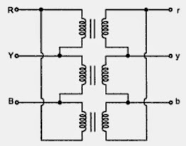 :WYE-Delta Connectionفي العادة يتم استخدامها للمحولات الخافضة للجهد إذ أن توصيلة WYE في جهة الضغط العالي تقلل من تكاليف العزل.