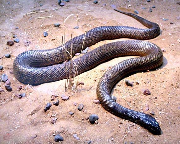 يصل طولها الى مترين وتستوطن وسط استراليا وتفرز كمية سم عن العضة الواحدة قادرة علي قتل 100 رجل بالغ أو 250.000 فأر.ومن المتفق عليه أن سم التايبان الداخلي أقوي 50 مرة من سم الكوبرا الهندية و650-850 مرة من الثعبان ذات الأجراس ذو الظهر الماسي الشرقي والغربي.