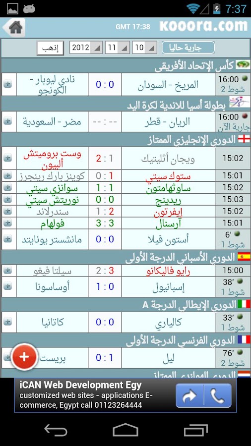 - برنامج لعشاق الرياضة يمكن من خلاله معرفة مباريات اليوم بالكامل و المباريات الجارية حاليا بالنسبة لجميع المسابقات .