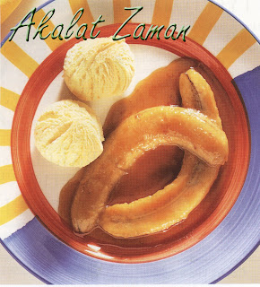 4- يوضع الموز عليه الصوص في طبق التقديم ويقدم ساخن مع آيس كريم الفانيليا.