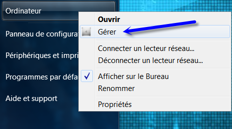 قبل البدأ عليك ربط الفلاش ميموري مع الحاسوب ثم نتوجه الى قائمة ابدأ (démarrer) ونضغط بالمفتاح الايمن للموس على ordinateur او my compter لتظهر Géner