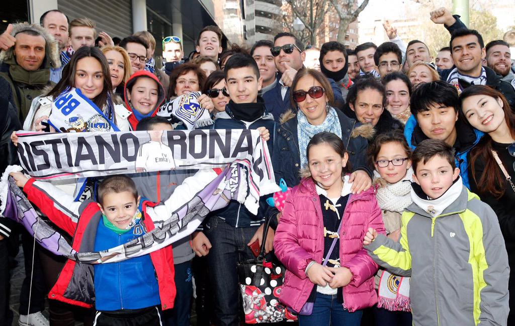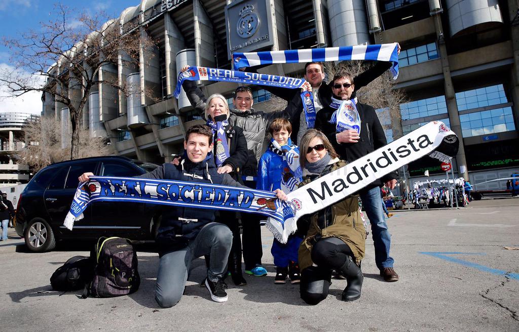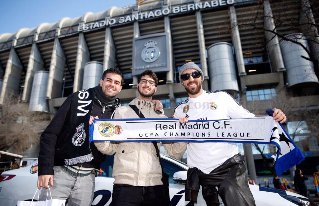 توافد العديد من الجماهير الملكي الى ملعب السانتياغو برنابيو قبل بساعة من انطلاق مباراة النادي الملكي ريال مدريد امام ريال سوسيداد في الجولة 21 من الدوري الاسباني , الجماهير الملكي كانت مسرورة خارج البرنابيو وقامت بإلتقاط الصور هناك اليكم بعض منها .