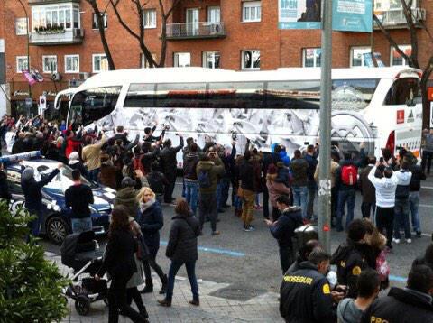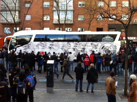 وصلت حافلة فريق العاصمة الاسبانية ريال مدريد وبطل اوروبا الى ملعب السانتياغو برنابيو قادمة من سويداد الفريق للتحضير والاستعداد لمباراة الفريق امام نادي ريال سوسيداد بعد ساعة من الان في تمام الساعة الثالثة بتوقيت غرينيتش .