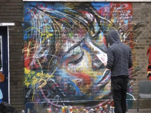 والنابضة بالحياة لأنه يريد لوحاته أن تثير تساؤلات المشاهدين وخاصة أنه يرسمها على الجدران ويستخدم رذاذ الطلاء