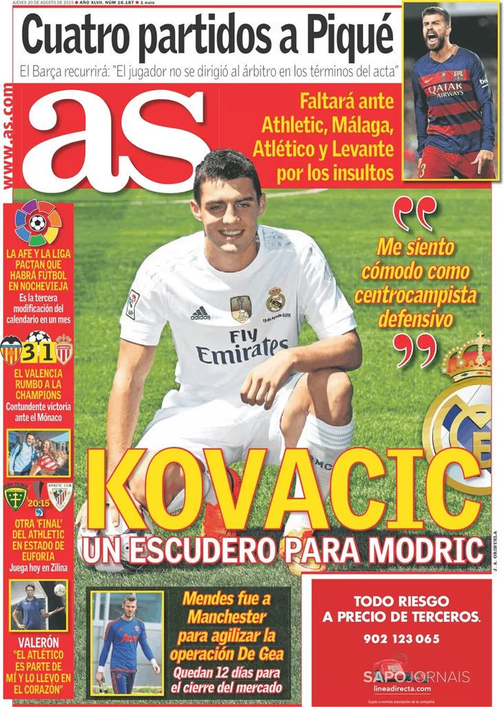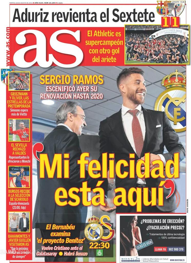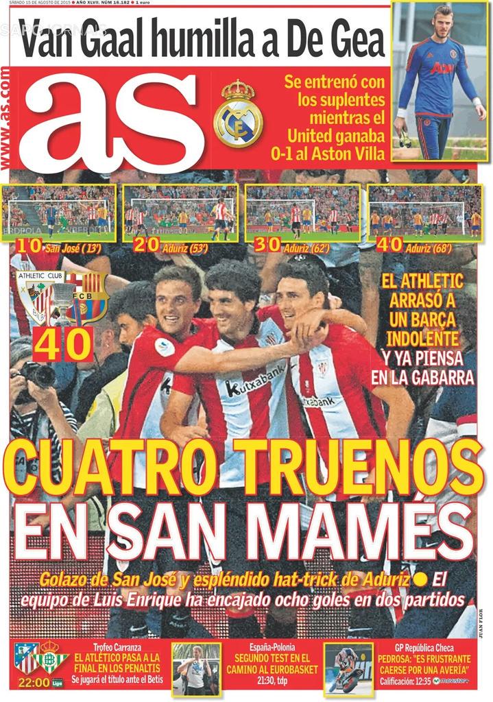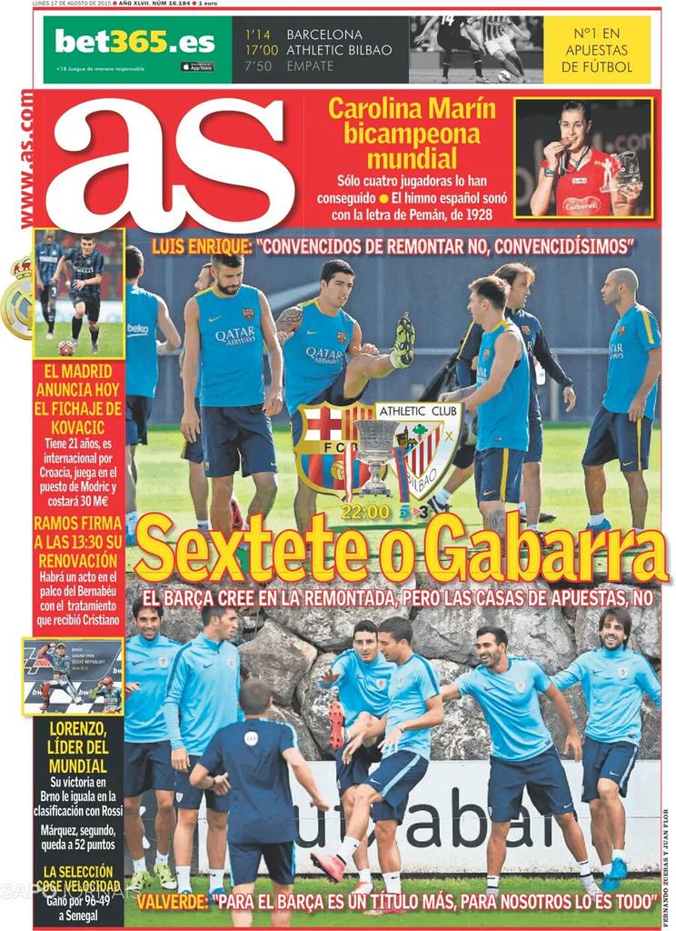 نشرت صحيفة آس الإسبانية على موقعها الإلكتروني غلاف عددها الصادر ليوم الجمعة 14 أغسطس , الصحفية تناولت في عدد اليوم لاإقبال الكبير على تذاكر كأس البيرنابيو كما تطرقت لتصريح مدرب إسبانيا ديل بوسكي.