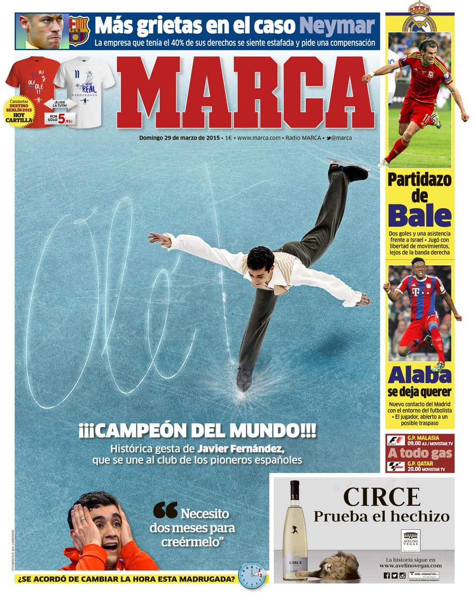 جاء في صحيفة الماركا ضمن عددها الصادر لهذا اليوم عناوين موجزه عن احدث الاخبار التي تخص ريال مدريد،وقالت الصحيفة ان بايل قدم أداءا لافتا في مباراة منتخبه ويلز امام الكيان الصهيوني حيث سجل هدفين وصنع اخر،واضافت الصحيفة على ان الابا فتح الباب مجددا في قضية انتقاله لريال مدريد.