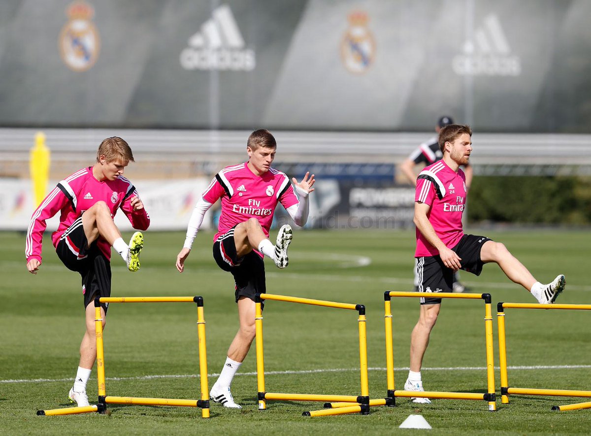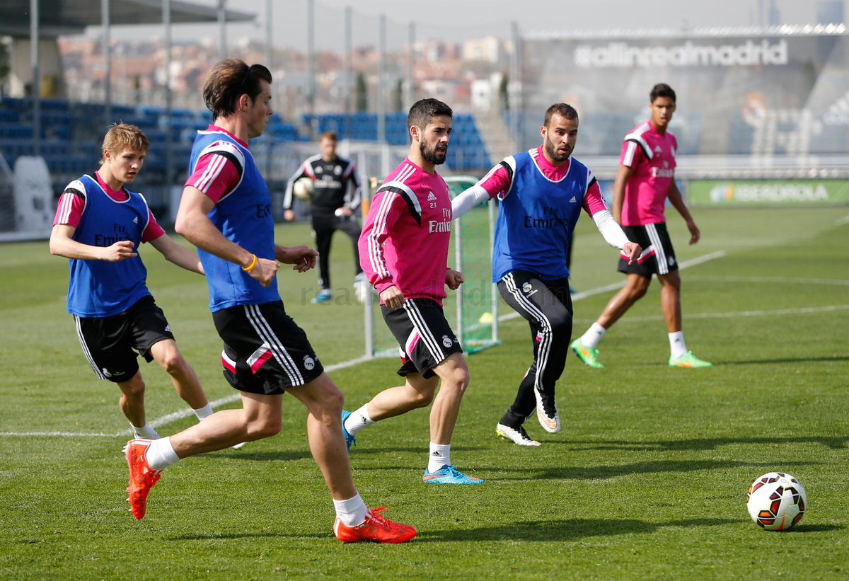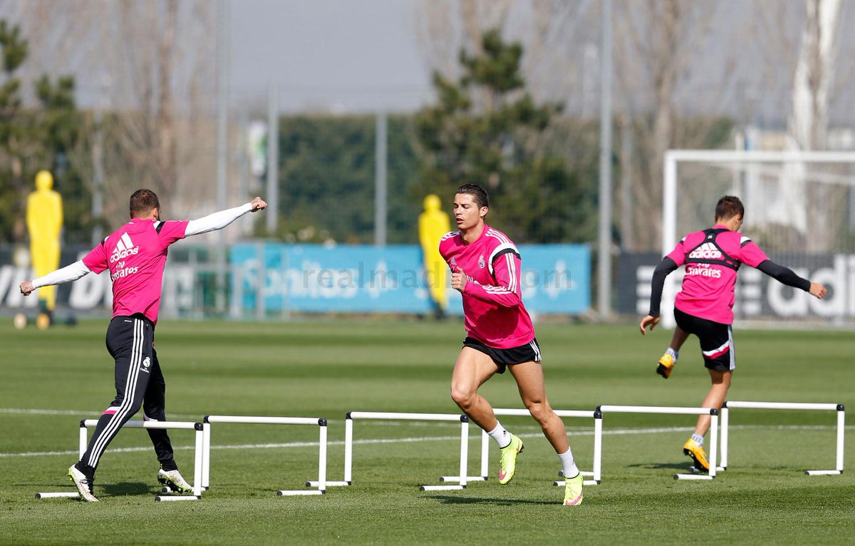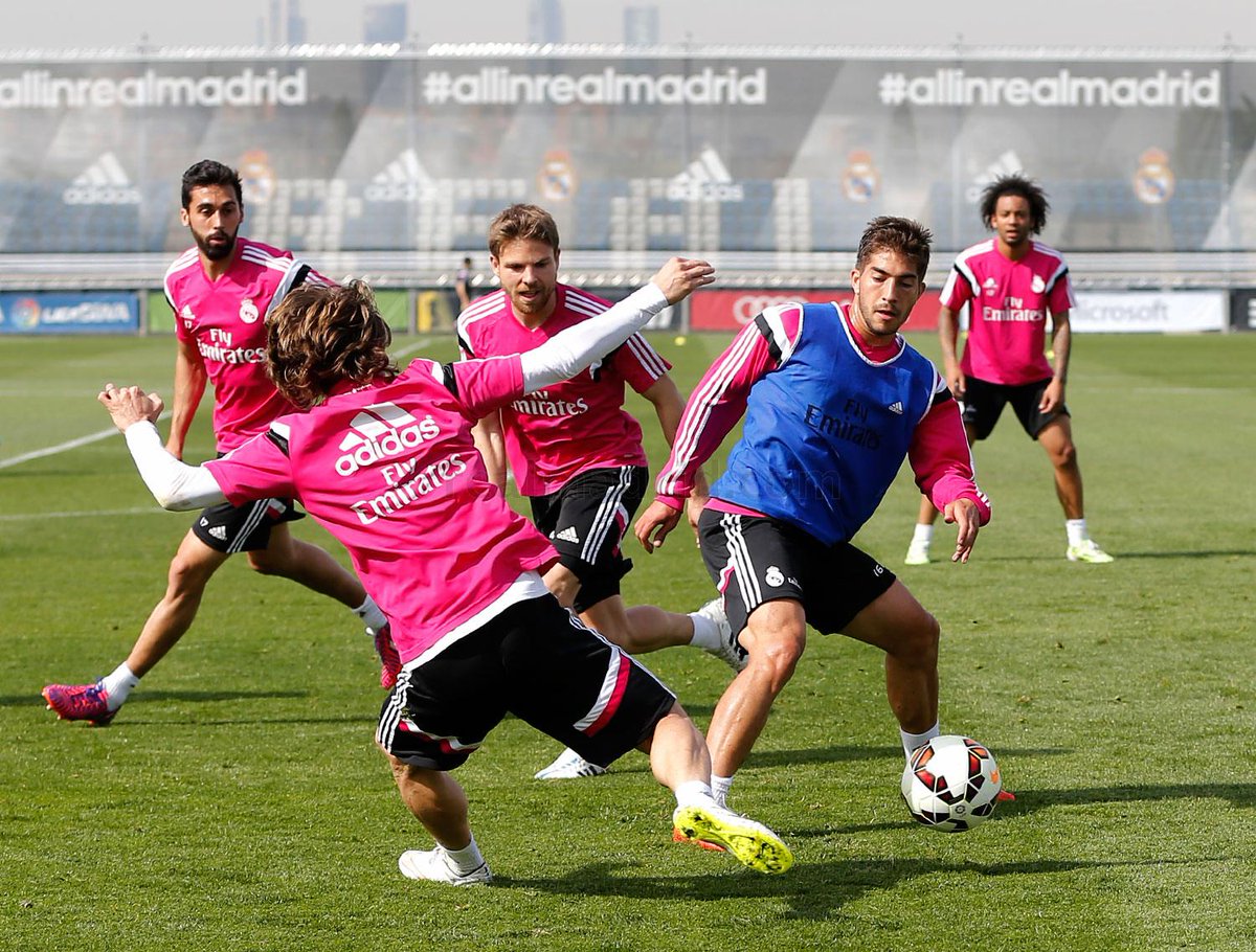 قام اللاعبين بنزيما وكارفخال بالتمارين داخل الصالة الرياضية , في حين عمل كاسياس ونافاس بالاضافة لباتشيكو على تمديد العضلات والتدرب بالكرة .