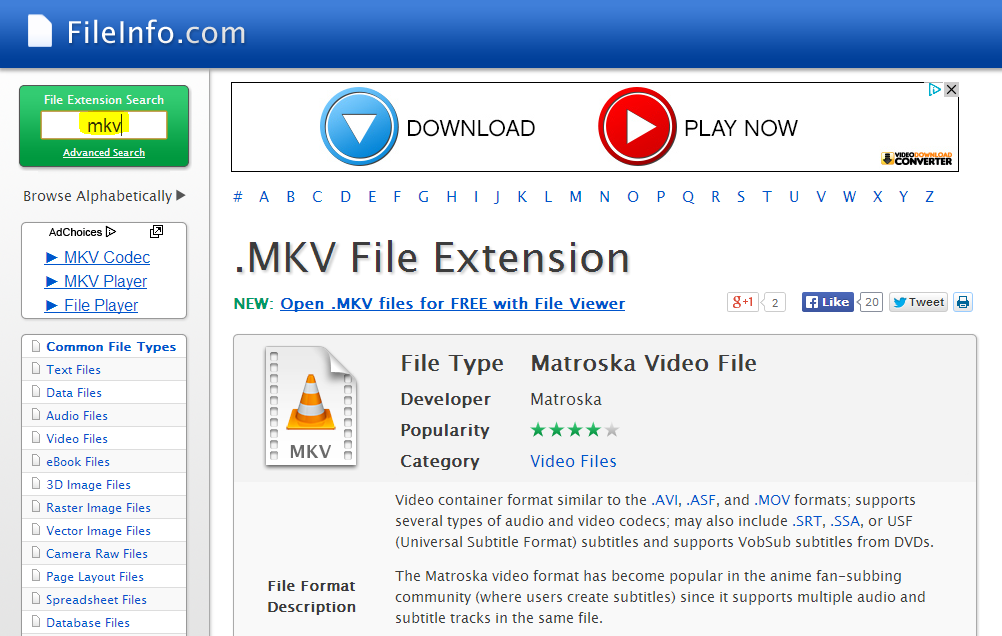 fileinfo واحد من بين المواقع الكبرى التي تتوفر على قاعدة بيانات ضخمة تستطيع من خلالها تحديد و معرفة البرامج التي تشغل كل صيغة، حيث يوفر لك الموقع لائحة تضم العديد من البرامج لكل نظام (mac، windows، linux) بالإضافة إلى مجموعة من المعلومات حول هذا التمديد، فكل ما عليك هو ولوج الموقع ثم كتابة الصيغة في مربع بحث الموقع ثم تنفيذ البحث، بعد ذلك تستطيع تثبيت البرنامج المناسب لتشغيل الملف أو إعطاء تصريح للنظام بفتح الملف بهذا البرنامج إن كنت تتوفر عليه ( كما أنه يوفر برنامج يقوم بنفس العملية )