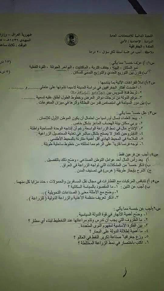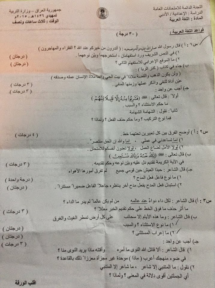 تحميل كل الاسئلة التمهيدية لسادس الاعدادي - علمي ادبي 2015