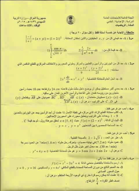 الان يمكنك تحميل كل الاسئلة السادس العلمي للاسالة التمهيدية لعام 2015 والاستافدة منها