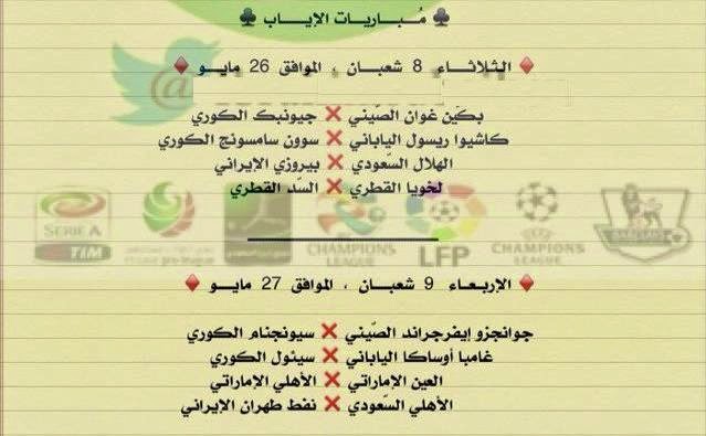جدول نقل مباريات دورى ابطال اسيا دور الــ 16