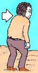 غالباً ماتكون كتفيه مرتفعتان قليلاً هناك تباعد واضح بين ساقيه حتى في مشيه جسده غالبا لا يتحرك بخفة