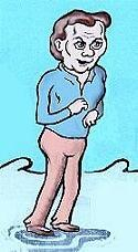 منطقة البطن دائماً مشدودة لديه ( يشفط ) بطنه بشكل مستمر وهو يسير يميل للمشي سريعاً والحركة بشكل عفوي