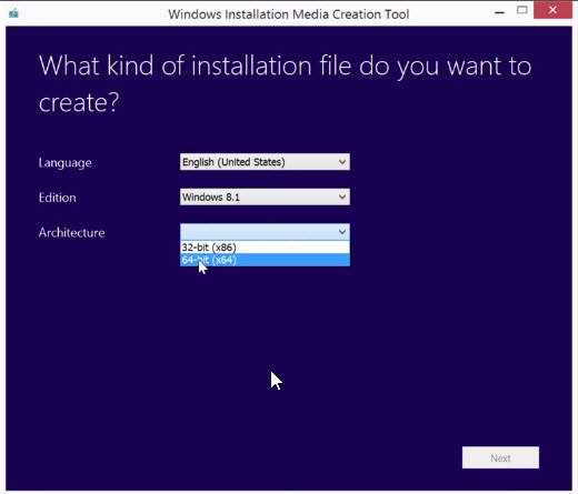 تختار اللغة ونظام التشغيل ثم نسخة الوندوز 8.1 التي تريدها وأنصحكم ب PRO ثم تضغط على NEXT وسيعطيك خيارين ، الأول تحميلها وحرقها مباشرة على USB ، والثاني تحميلها ISO ، تختار مايناسبك وسيبدأ التحميل .
