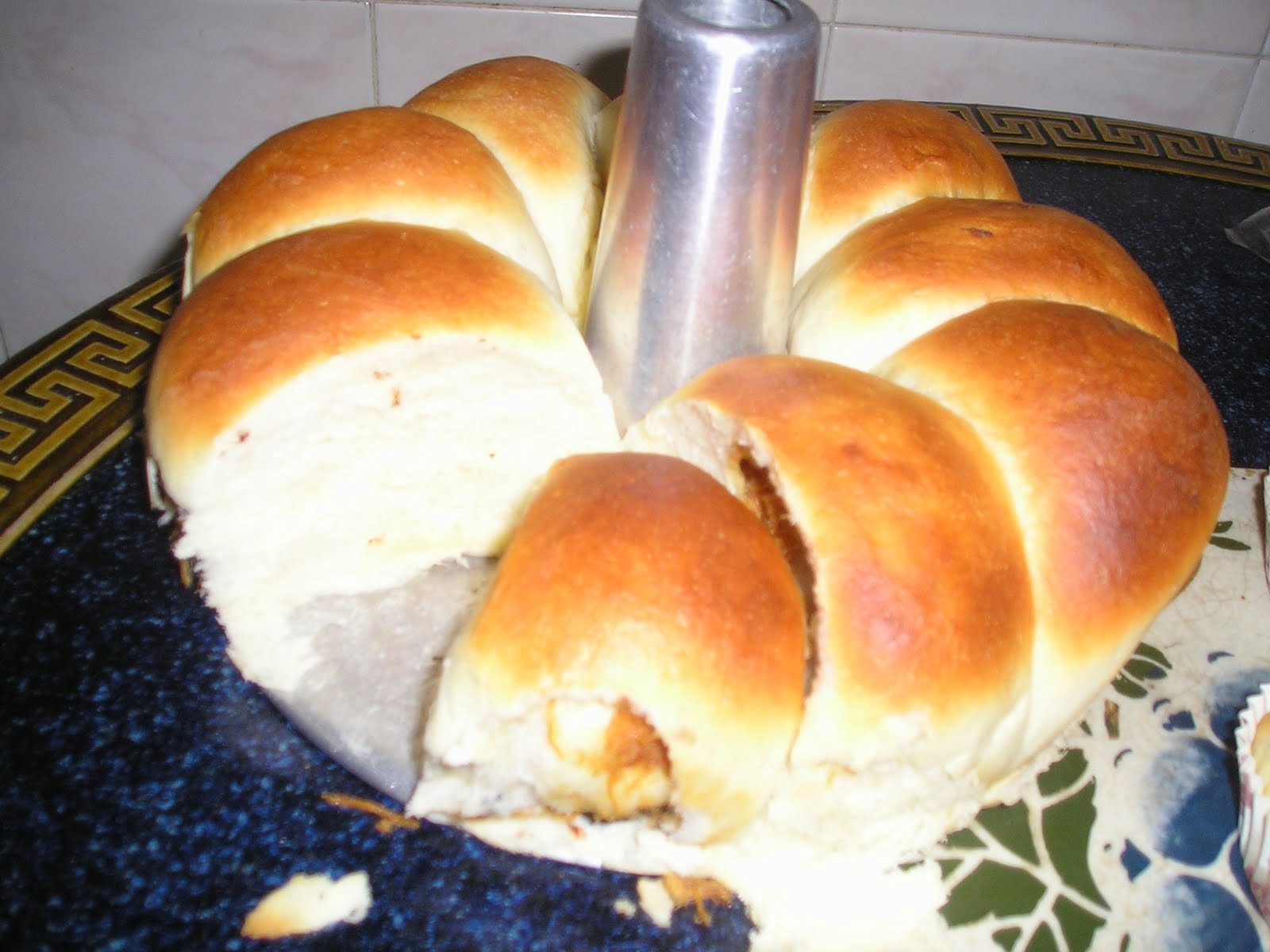 • نذيب الزبدة في الحليب الدافئ ثم نضيف باقي السكر والدقيق مع الملح ونعجن، نضيف الخميرة بالحليب ونعجن جيداً حتى نحصل على عجينة متماسكة.