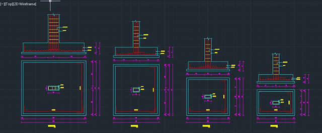- تصميم جميع أعمدة المجموعات لجميع الطوابق المدخلة مع رسم جدول الأعمدة اللازم للمخططات في الأتوكاد كما موضح بالصور