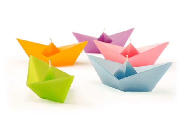 الشموع تضفي جواً خاصاً جداً في المنزل ، فيمكن إضافة هذه اللمسة على جميع أرجاء المنزل لتعطي المنظر الرائع أو يمكن أن تقدمها كهدية مناسبة لصديق ، اليوم المصمم Roman Ficek قامت بتصميم شكل جذاب للشمع وهو مستوحاه من القوارب الورقية ، فتستطيع بعد أن تضيء الشمعة أن تضعها في حوض من الماء وتستمتع بالمنظر الخلاب ، لهذا التصميم سته ألوان جذابة كما تشاهد في الصورة ، وتصمد الشمعة أكثر من 2 ساعة وهي مضيئة . " شمعه تطفو على الماء أليس جميلة !! " (: