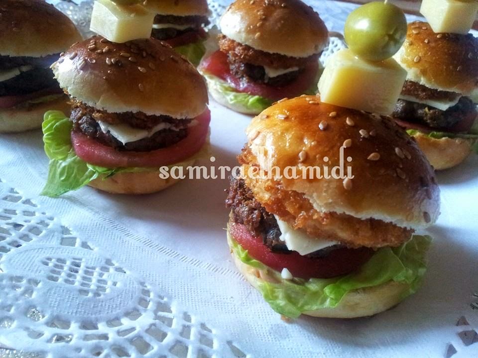 واضع في الاخير القليل من الكتشب ويغطى الهمبركر بالنصف الاخر من الخبز ويزين حسب الرغبة انا زينتو بالزيتون وقطع جبن او يقدم مع بطاطس مقلية في صحون فردية وبالصحة والراحة