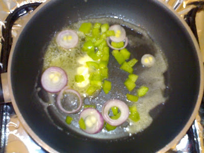 في مقلاه ضعى الزبده والبصل والفلفل وقلبيهم دقيقتين حتى يذبل البصل