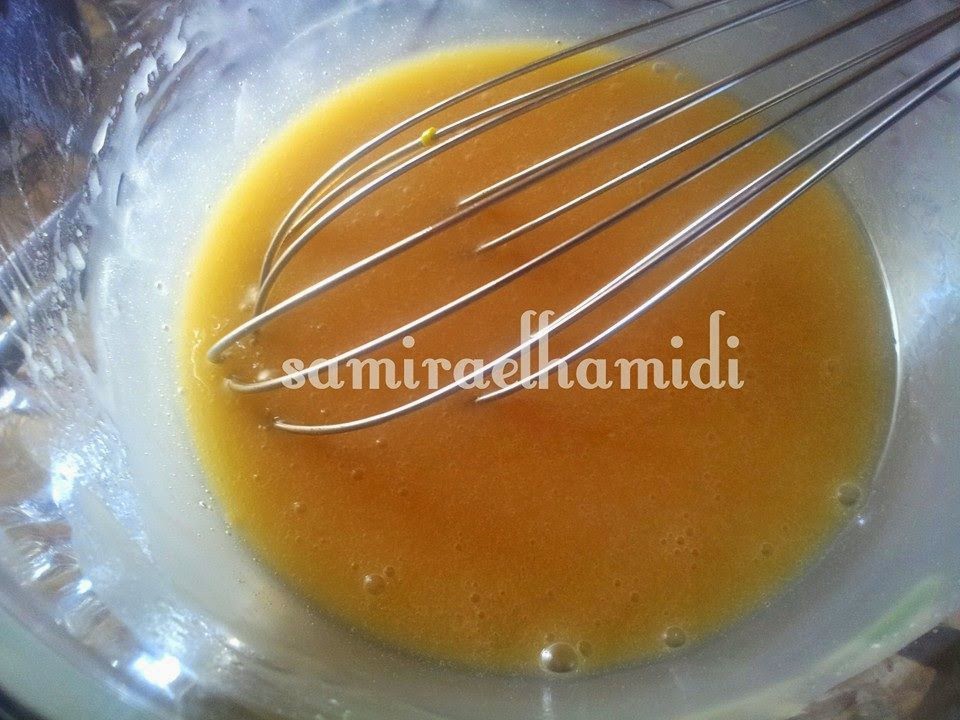 عندما يبرد الخليط قليلا لكي ازيل الفقعات التي ممكن تبقى داخل القليل امسك بالاناء من الاسفل بيدي اثنين واحركه كما لو انني اغربل الدقيق اي من اليمين الى اليسار ثم من اليسار الى اليمين ولاكن بحركات خفيفة وهادئة وستلاحضون تجمع الفقاعات في الوسط فازيلها بملعقة او ممكن انها تزول بفعل هد الحركات