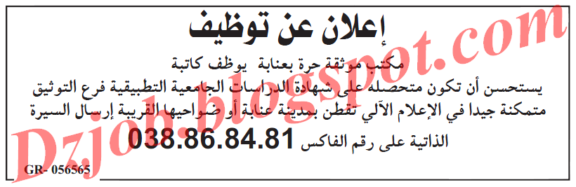 اعلان توظيف كاتبة بمكتب موثقة حرة بعنابة أوت 2012