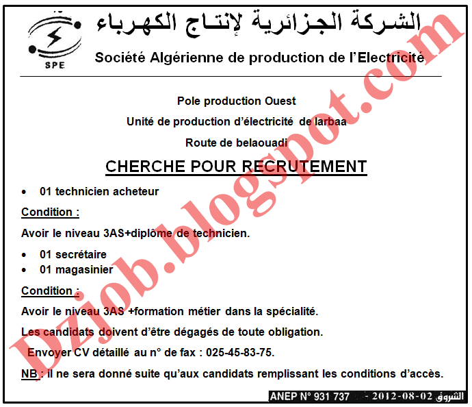 اعلان توظيف في مديرية الأشغال العمومية لولاية سكيكدة أوت 2012