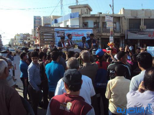 بالصور : العشرات يتظاهرون في الناصرية لمطالبة البرلمان بالتصويت لحكومة العبادي الجديد