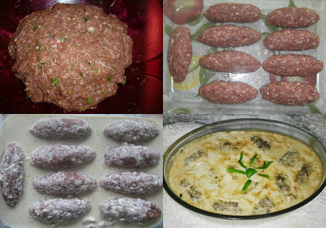 - تُشكل الكفتة إلى أصابع أو كرات وتوضع في صينية زجاجية صالحة للفرن مدهونة بالزيت.