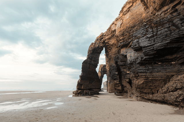 تكوينات جيولوجية مذهلة أنتجت أعمدة وأقواس شبهها الإسبان بالكاترائيات. يمكن الوصول للشاطئ فقط أثناء انخفاض المياه.