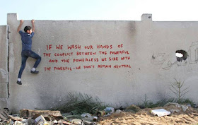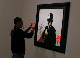 في الليل، وفي أماكن لا يتوقعها جمهوره يرسم فنان الجرافيتي «بانكسي» لوحاته على جدران الشوارع، متخذًا من أحد معالمها مرتكزًا لرسومه التي تلفت نظر الجمهور؛ لما تحمله من رسائل مختلفةً حول الفنّ والفلسفةِ والسياسة، وما تثيره من قضايا، إذ تخوض موضوعاتها في الحرب، والرأسمالية والنظام العالمي، وممارسات رجال الشرطة، وغيرها.بدأ بانكسي بالرسمِ اليدويِّ، ومع تزايد البحث عنه تحوّلَ للرسمِ بالإستنسل «ملء لوحات مفرغة مسبقًا، بالألوان» وهو ما يساعده على إنجاز أعماله بسرعة ودقة دون الكشف عن هويته، وهو يرسم على المجسّماتِ أيضًا، ولعلَّ أشهرَ رسومه لوحته من النمط الفيكتوري التي رسمها على فيلٍ حيّ، كما استخدم لوحات أصلية كمادة لأعماله، وأدخل عليها تغييرات.