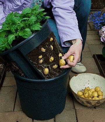 زراعة البطاطس بإستخدام الأواني البلاستيكية بعض الأواني البلاستيكية تسهل عملية الحصاد من خلال وضع إناء به فتحات داخل إناء آخر عادي , يمكنك صناعتها بنفسك .