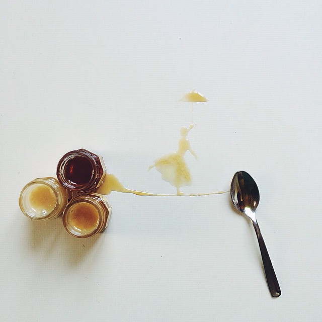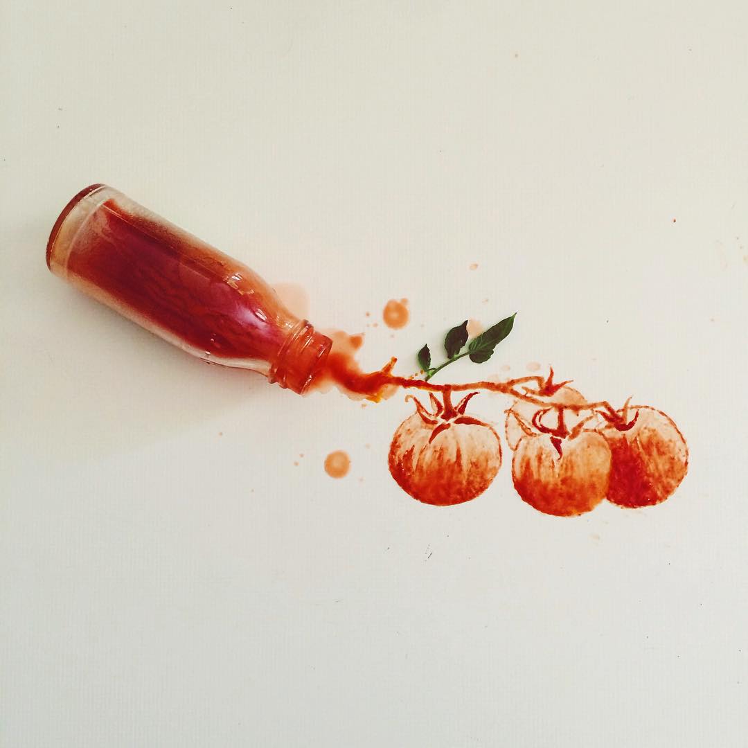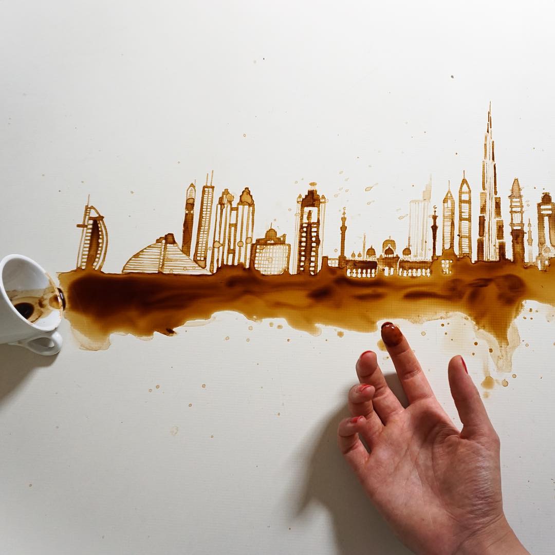 تحويل المشروبات المسكوبة على الارض الى فن جميل من عمل الفنانة جوليا