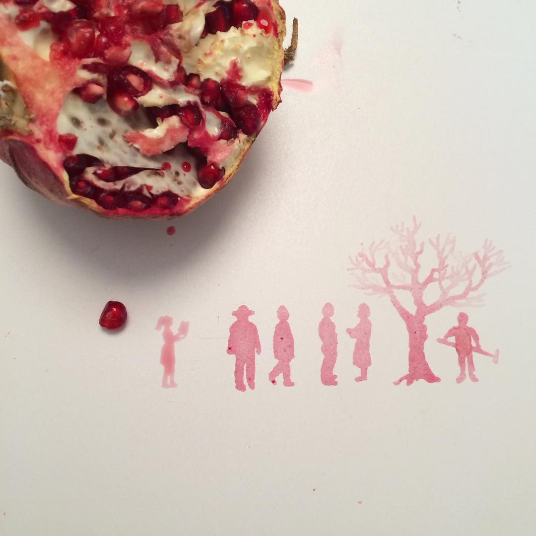 قررة جولنا المحبة للرسم ترك الفرشة و إستبدالها باوراق الشجر وقشور الفواكة والمواد الغذائية الاخرة و الرسم على اي شيء يقع امامها .