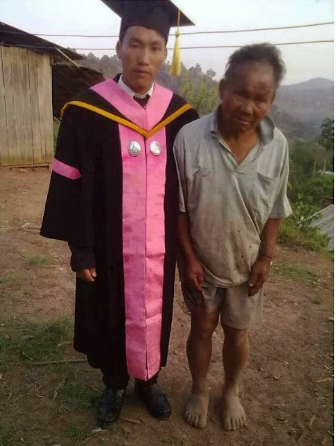 طالب متفوق بعد تخرجه من الجامعة مع أبيه المزارع البسيط.