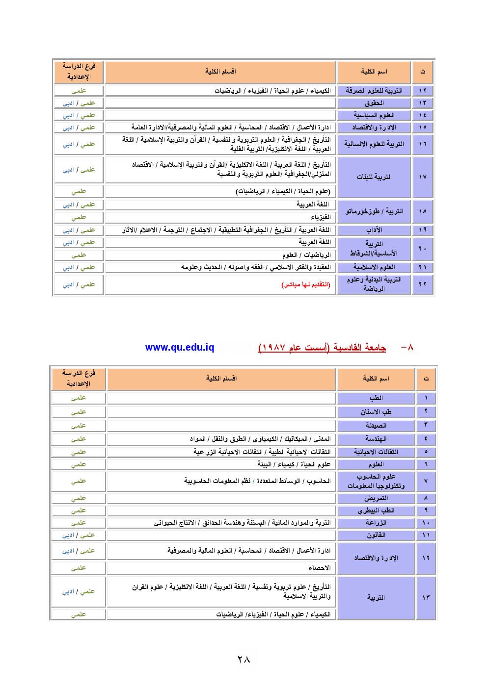 الكليات والمعاهد العراقية واقسامها التي بامكان الطالب خريجي العلمي والادبي التقديم اليها 2016-2017